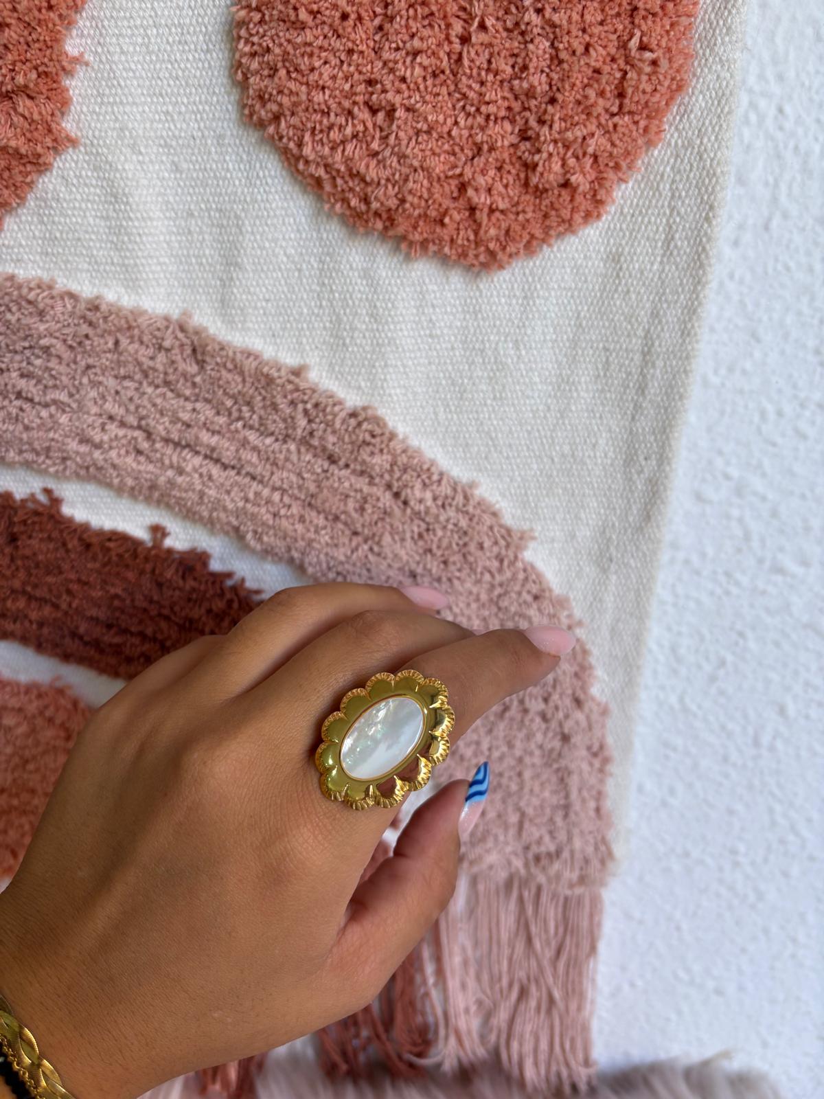 ANILLO ÓVALO FLOR NÁCAR