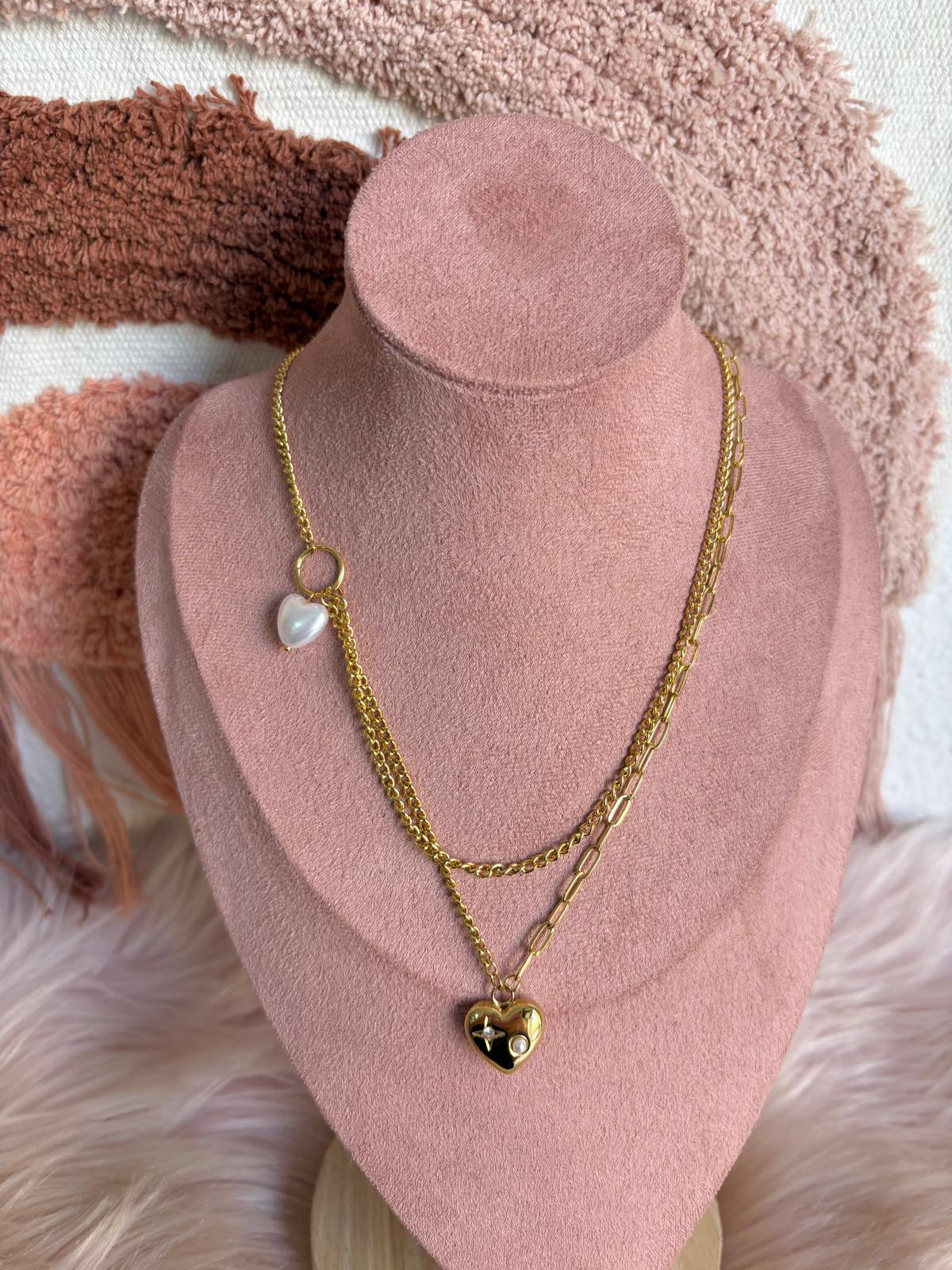 COLLAR DOBLE CORAZON NÁCAR
