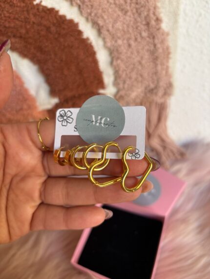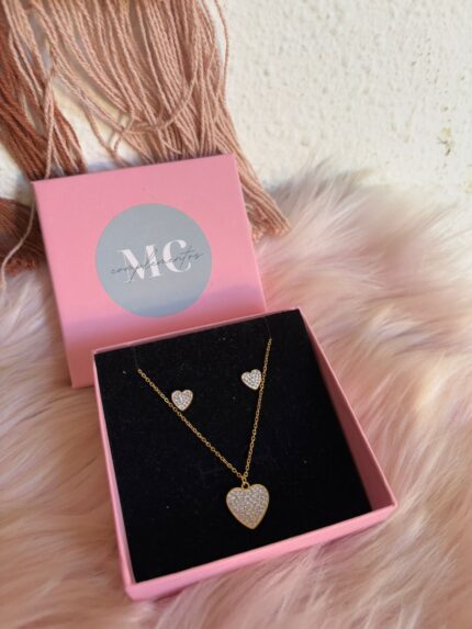 PACK PENDIENTES Y COLLAR CORAZÓN BRILLO