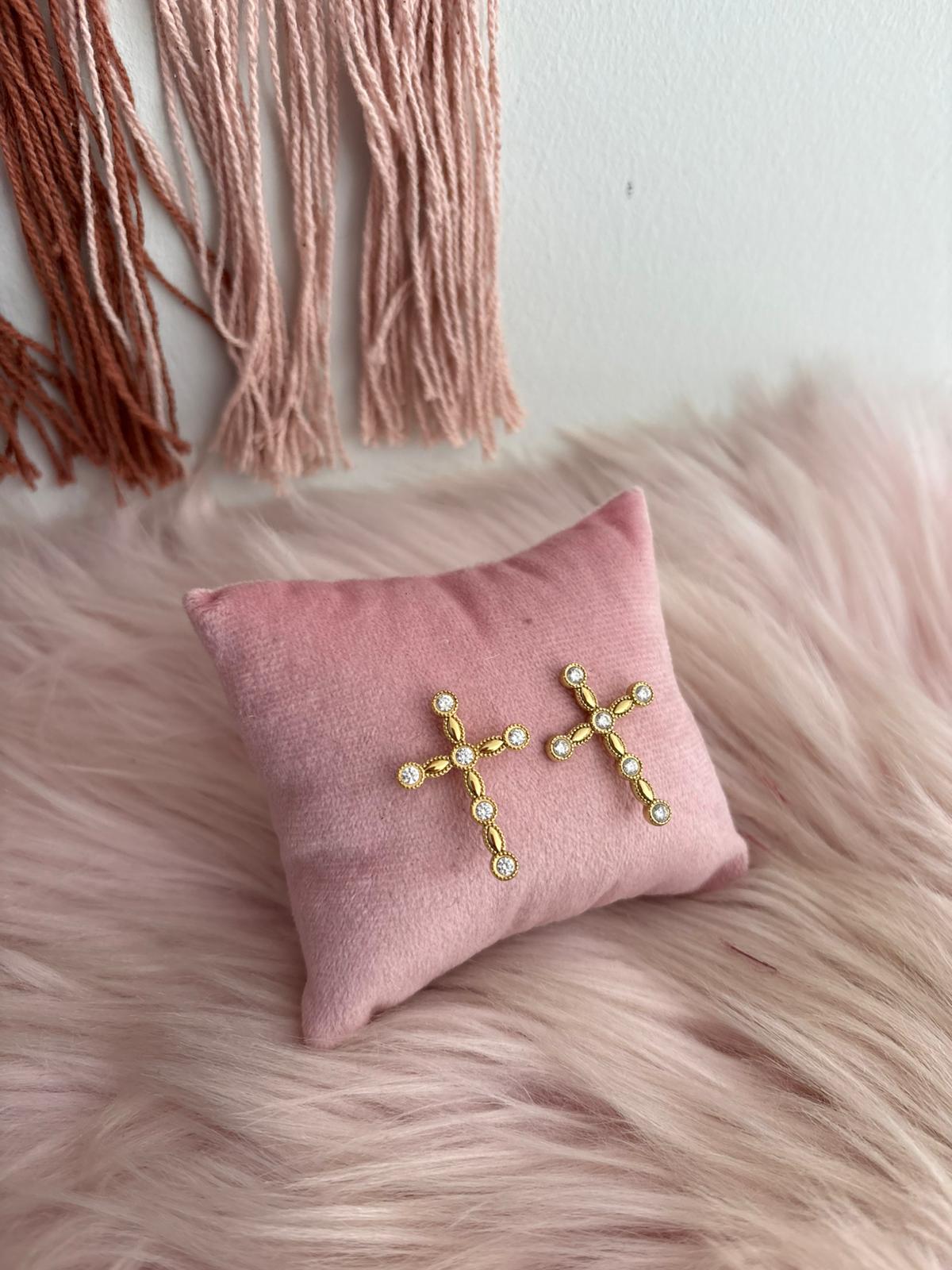 PENDIENTES CRUZ CIRCONITAS BRILLO