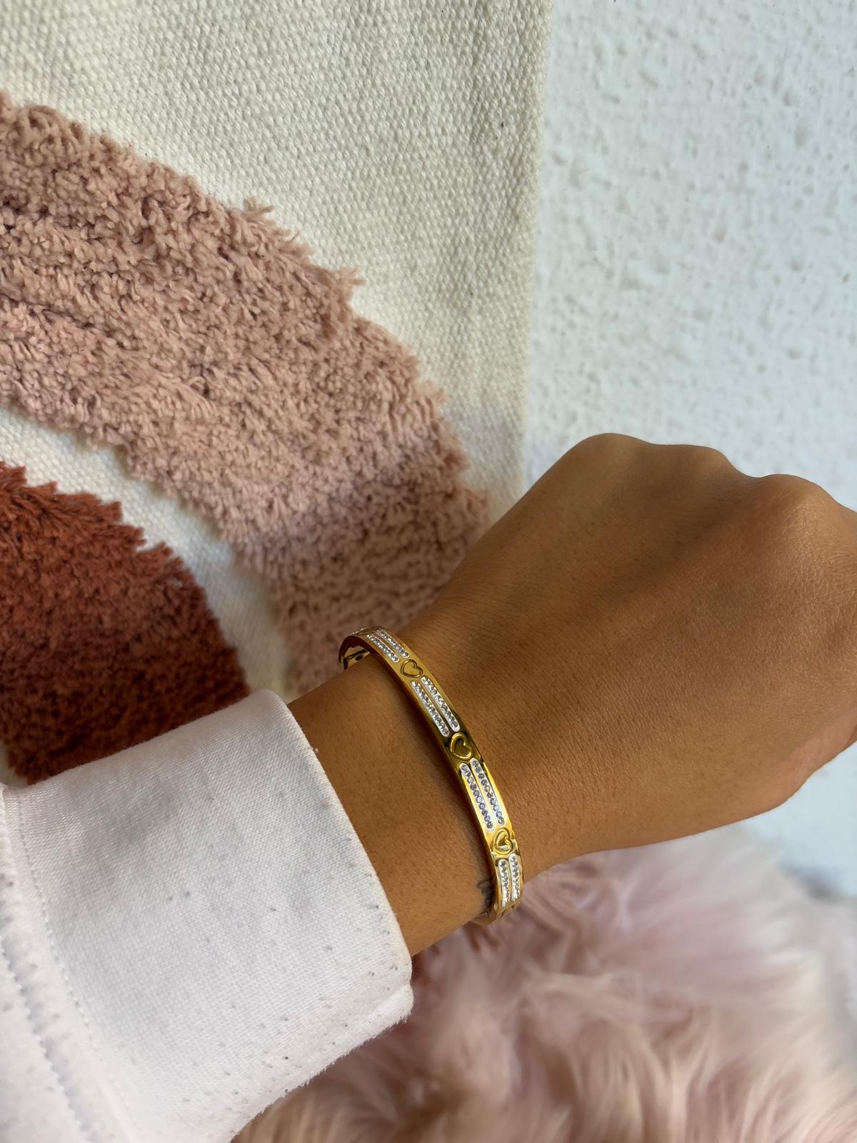 PULSERA DE CAÑA CORAZONES BRILLO